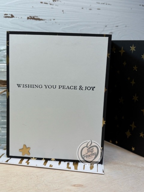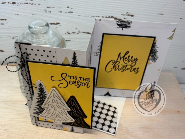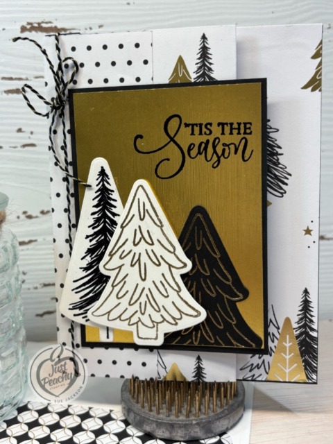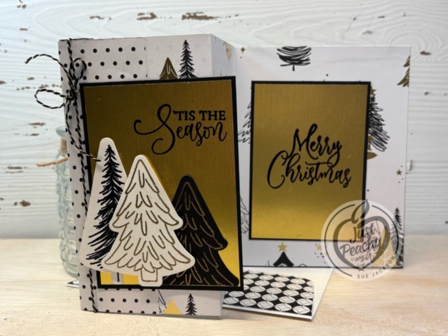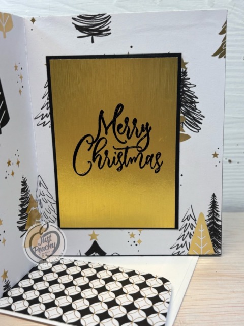 - I used embossing gold and black embossing powder for the trees and sentiment on the inside and front