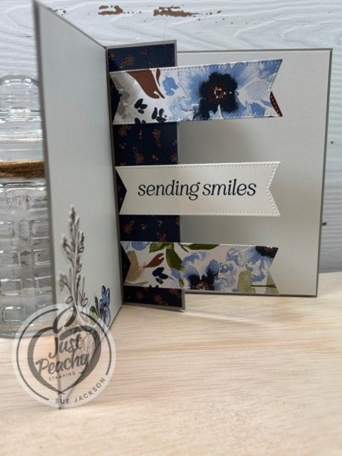I used a video tutorial from Susan Campfield to create this card. I did need to make some adjustments to her measurements on the inside so that about 12 people can sign it for a colleague who has been recovering from an injury. Sue gives all the measurements for this card, and other versions of it, in the video.