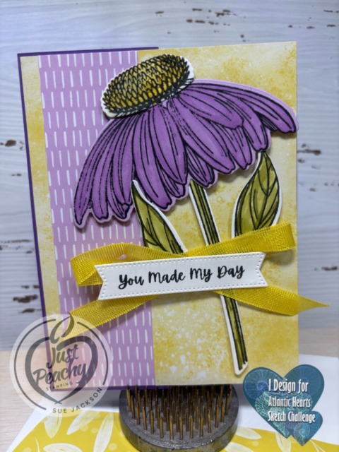 Welcome to my combination of the Make My Monday #262 and the Atlantic Hearts Sketch Challenge # 650. Our host for MMM, Guylaine chose Fabrics &/or Textiles for this challenge’s theme. I combined that with the sketch for AHSC #650 and came up with one card. When you finish here, I hope you will visit both challenge sites, create your own card, and upload to the respective galleries.