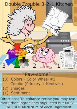 I’m 90% certain this card also qualifies for the current Double Trouble Challenge #212 for Thing 1 and Thing 3. For Thing 1, I used Basic Black, Real Red, Smokey Slate, and the leaves on the flowers are Garden Green. My images are the puppies on the front and the paw prints on the inside of the card. I’m. not sure that the paw print die cut counts as an image. I met Thing 3’s challenge by using the puppies.