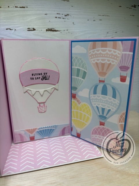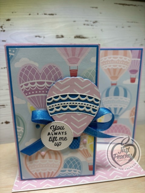 I’m very thankful that, as a design team member, I have access to the themes months in advance, especially for this theme. I didn’t have anything for this challenge, and needed to search. Luckily, the hot air balloon die set was on last chance product list for Stampin’ Up! so I snagged that. Then I turned to eBay, where I found a card kit for this retired DSP (designer series paper), which contained all the DSP I used for this card.