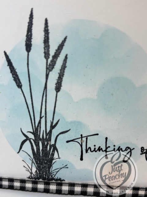 I stamped the prairie grass in Momento Tuxedo Black ink on the side of the cloud-filled circle