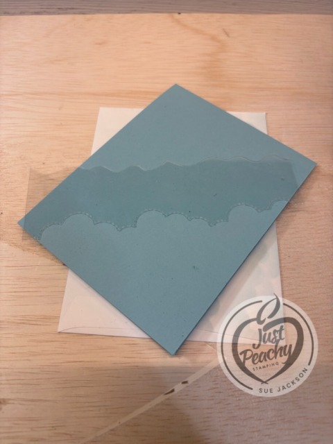 Use the blending brush, Balmy Blue ink, and the cloud stencil to color the envelope flap