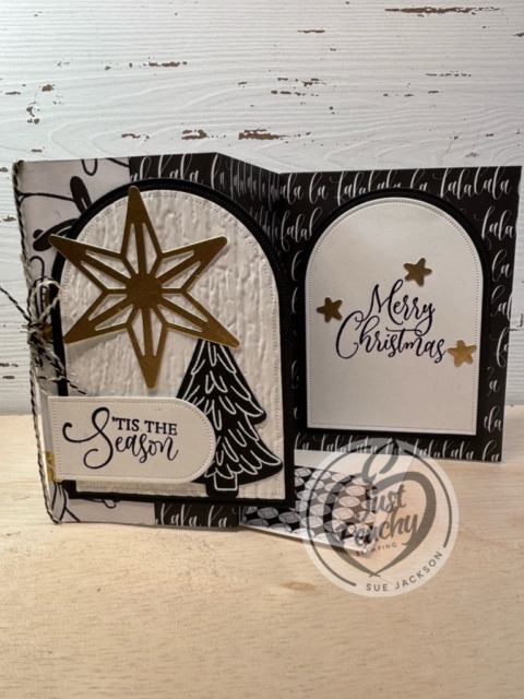 I used embossing white and black embossing powder for the tree and sentiments on the inside and front