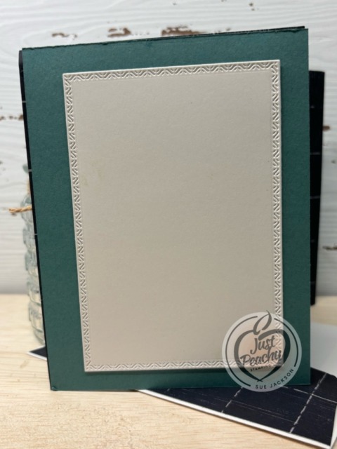 After adhering the strip of the embossed Very Vanilla to the bottom of the inside of the card, adhere it to the inside of the card