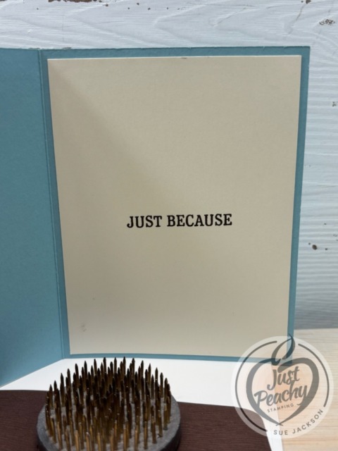 - Stamp the sentiment on the inside using Early Espresso ink and adhere it to the base of the card
