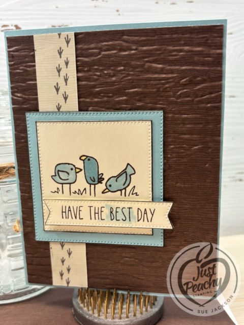 I used the birds from The Cutest Crew stamp set with Balmy Blue, Early Espresso, and Very Vanilla.